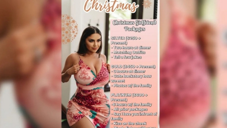Η Τζεσένια Ρεβέκα, μια 29χρονη σταρ του OnlyFans από το Μαϊάμι, βρήκε έναν δημιουργικό τρόπο να αντιμετωπίσει αυτό το ζήτημα, προσφέροντας υπηρεσίες ως «ψεύτικη σύντροφος» με τη μορφή χριστουγεννιάτικων πακέτων. Σύμφωνα με τη nypost, με κόστος από 250 έως 600 δολάρια, οι πελάτες μπορούν να την προσκαλέσουν σε οικογενειακά δείπνα,